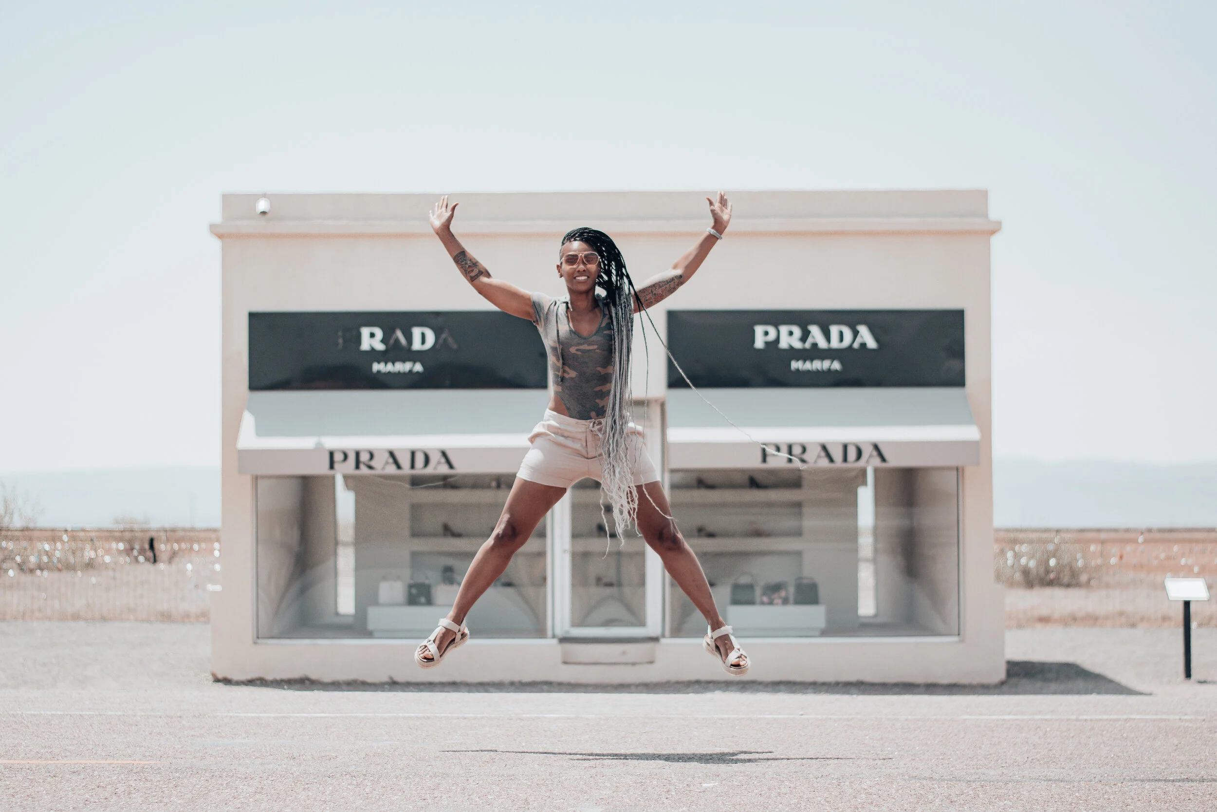 I’d preplanned for us to make some stops as we headed back to the Dallas-Ft. Worth metroplex and the first stop was the now infamous, thanks to Beyonce’s visit back in 2013, Prada Marfa store. I’ve wanted to visit this “store” ever since I saw her pictures on Tumblr. Talk about a real day one fan, did you know she had a Tumblr page?